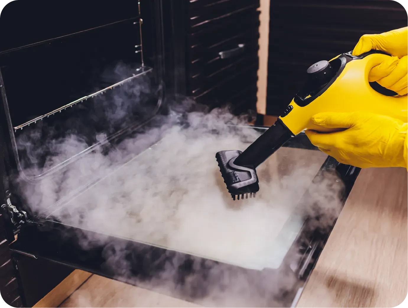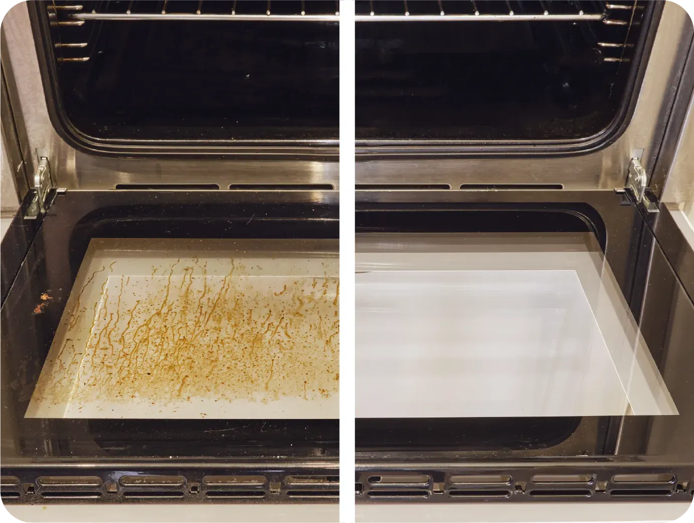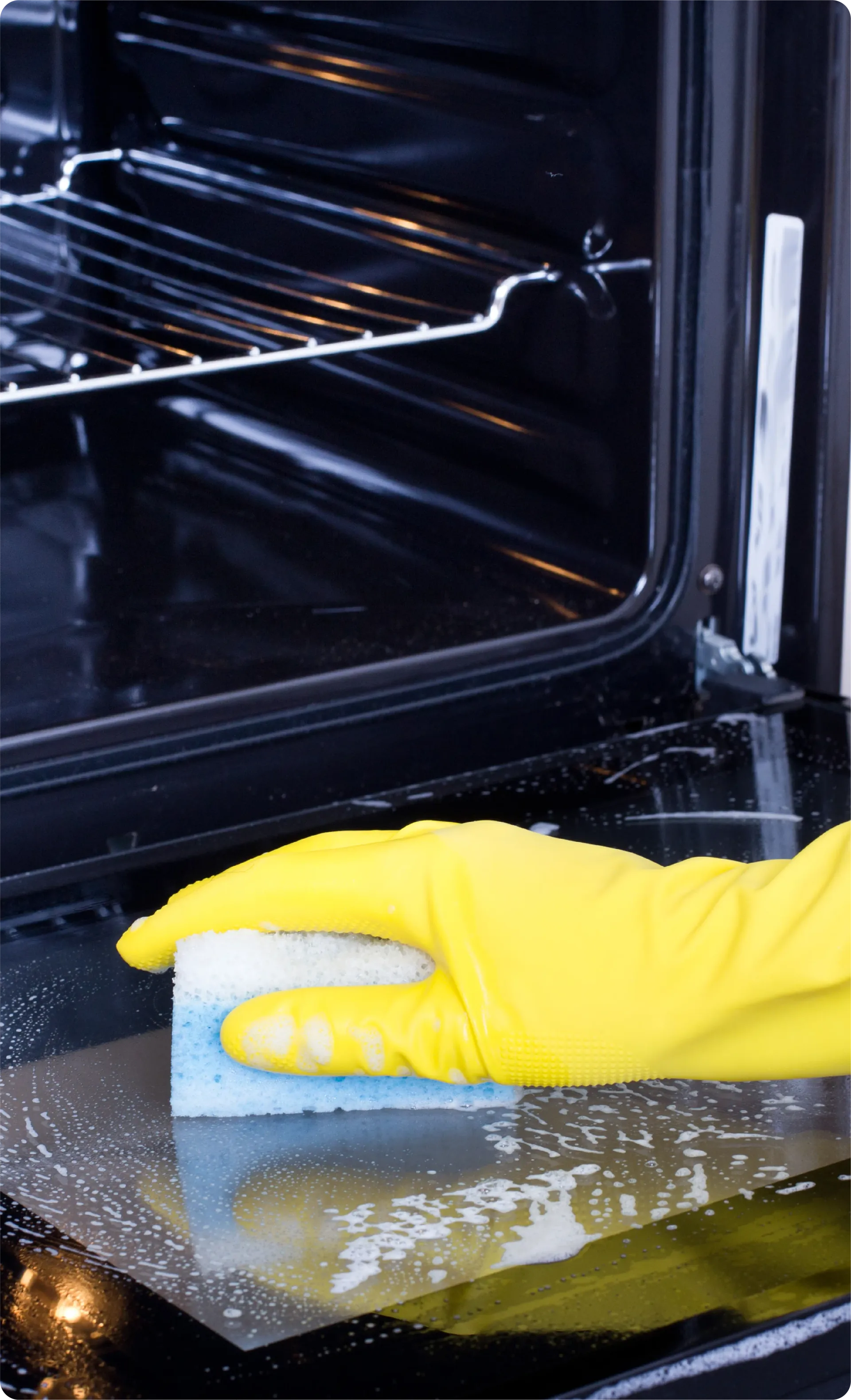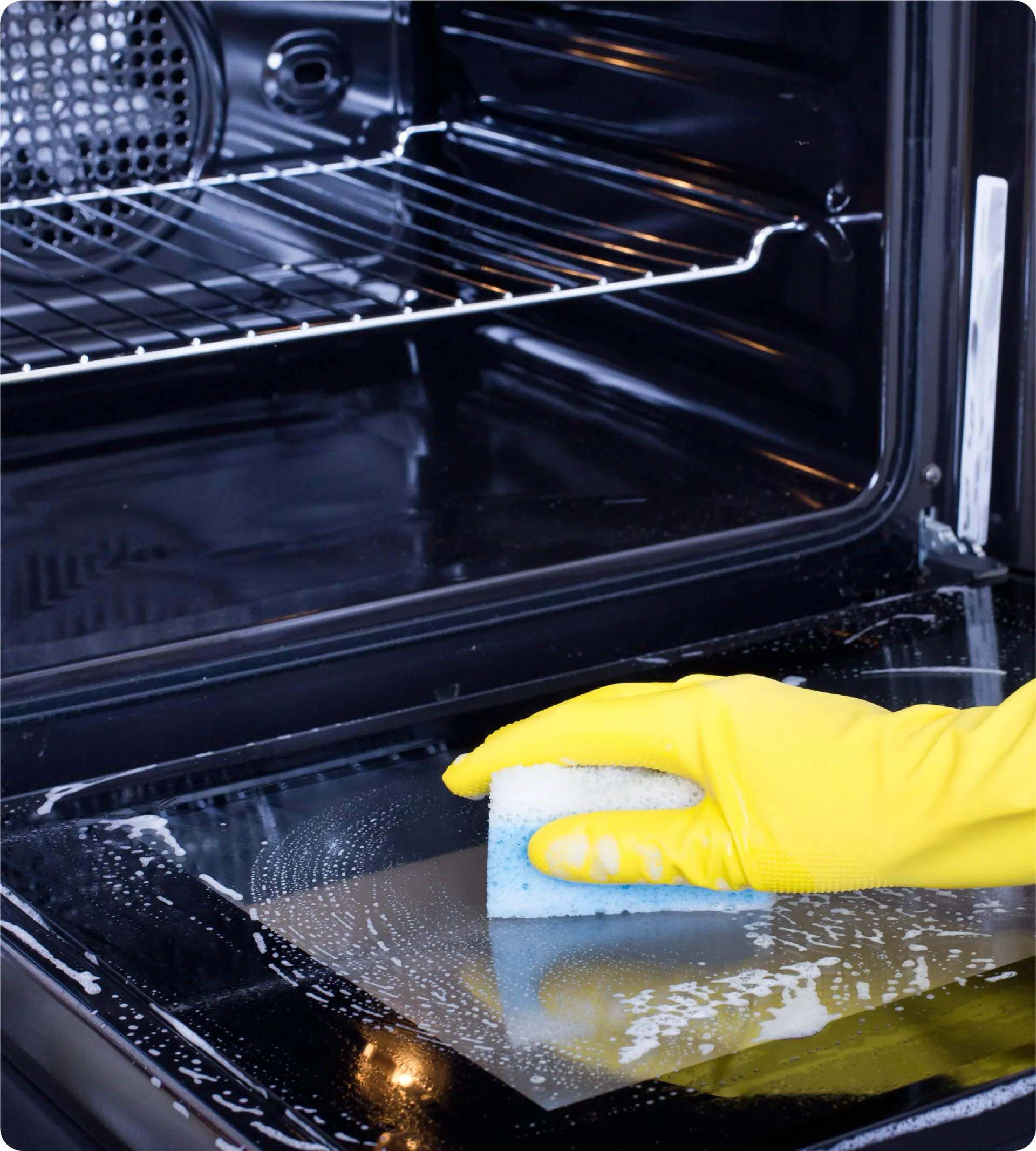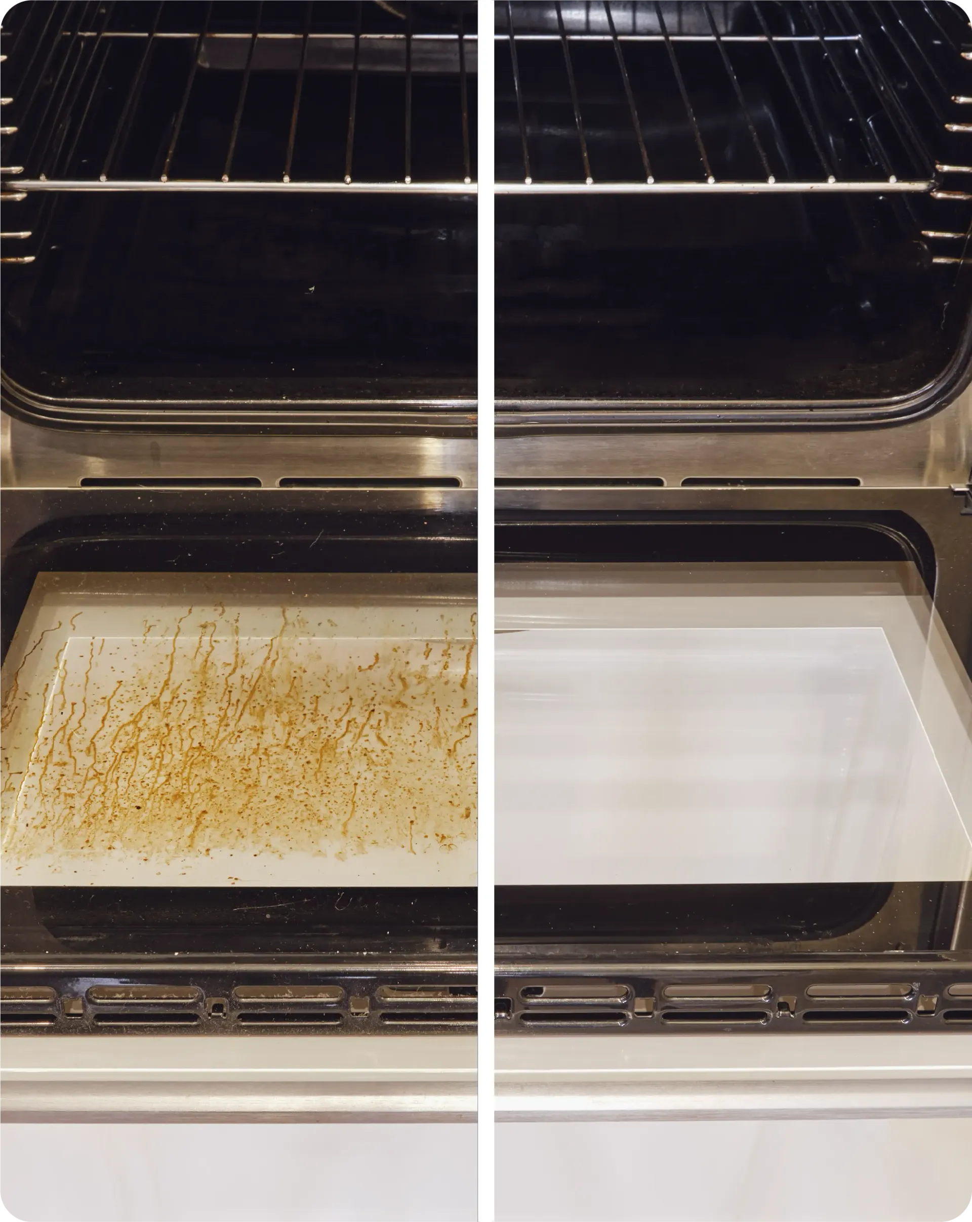 Our expert arrives, protects your floors, and leaves your oven sparkling.